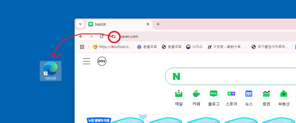 카테고리 없음 웹사이트 바로가기 아이콘 만들기 digitalharmony1 2025. 6. 10. 14:33 반응형 드래그 방식 (초간단 방법) 1단계: 원하는 사이트 열기 2단계: 주소창 왼쪽에 있는 아이콘 확인 <크롬 브라우져인 경우> <엣지 브라우져인 경우> 3단계: 아이콘을 마우스로 클릭한 채 바탕화면으로 드래그 4단계: 아이콘이 바탕화면에 생성되고, 더블 클릭하면 열립니다! 반응형 공유하기 게시글 관리 DigitalHarmony